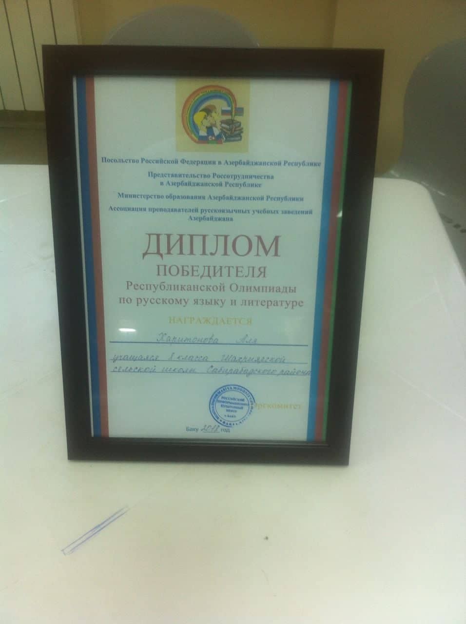 Olimpiadanın nəticələrinə əsasən isə Sabirabad rayon Şəhriyar kənd tam orta məktəbin şagirdi Aliya Xaritonova olimpiadanın qaliblərindən olublar. Onlar diplom və hədiyyələrlə təltif ediliblər.