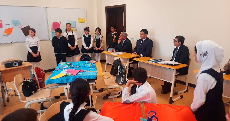 Dərsdən əvvəl Rabil Şahbazov və Günay Sultanova məktəbdə yaradılan şəraitlə tanış olub, pedaqoji heyyətlə görüşüblər. Görüş zamanı keyfiyyətli tədrisin təşkili, müəllim-şagird münasibətlərinin tənzimlənməsi və digər məsələlərlə bağlı fikir mübadiləsi aparılıb.