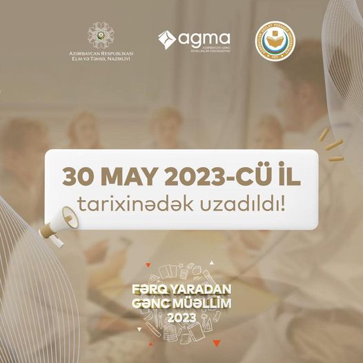 Azərbaycan Gənc Müəllimlər Assosiasiyası Azərbaycan Dövlət Pedaqoji Universitetinin ikili diplom proqramı ilə birlikdə ümumtəhsil məktəblərində işləyən, yaşı 35-ə qədər olan müəllimlər üçün “Fərq yaradan gənc müəllim 2023” müsabiqəsini elan edib.