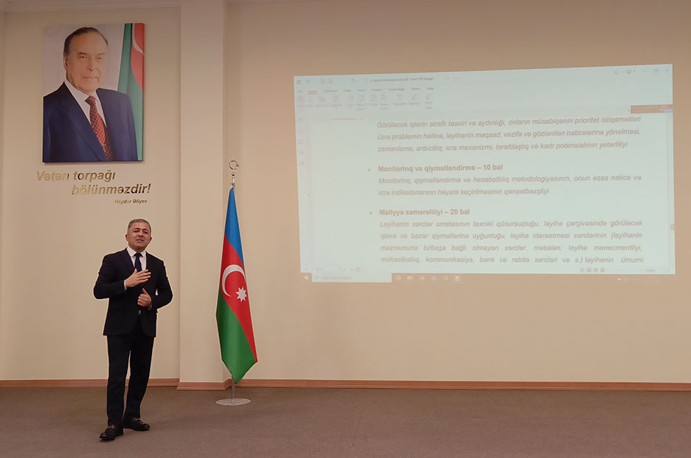 Görüşdə Mil-Muğan Regional Təhsil İdarəsinin Tədrisin keyfiyyəti sektorunun müdiri Mahir Zahidov layihələrin hazırlanması, layihə çərçivəsində problemin qoyuluşu, məqsəd və vəzifələr, görüləcək işlər, layihənin icra müddəti, gözlənilən nəticələr, qurulacaq əməkdaşlıq, layihənin monitorinqi və davamlılığı, qiymətləndirilməsi və hesabatlılığı və layihənin büdcəsinin hazırlanması barədə ətraflı məlumat verib. Layihəyəyə sənədlərin qəbulunun 4 mart – 10 aprel 2025-ci il tarixlərində www.grants.edu.az saytı üzərindən həyata keçirildiyin bildirib.