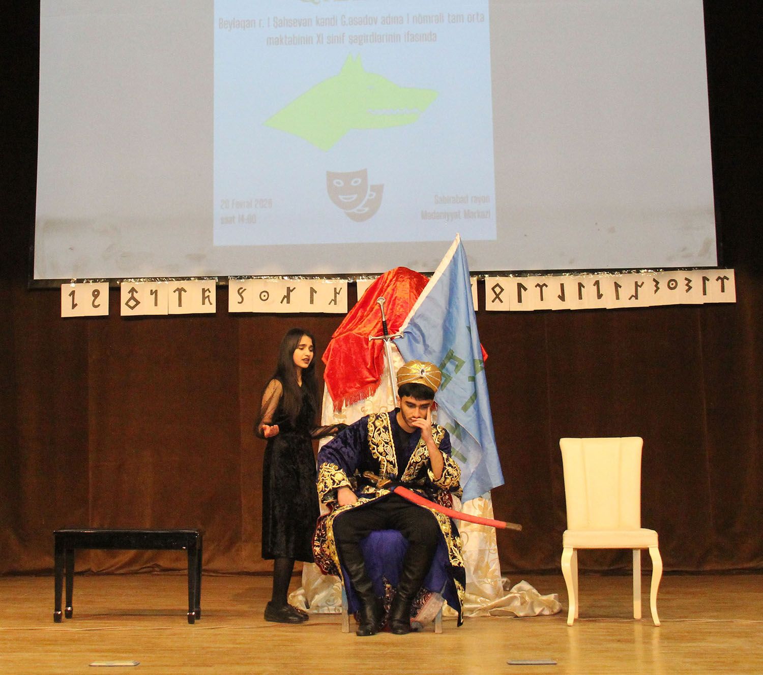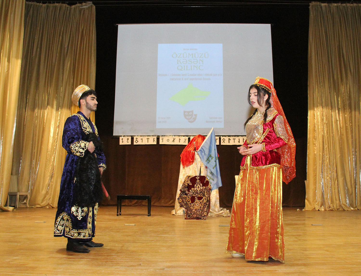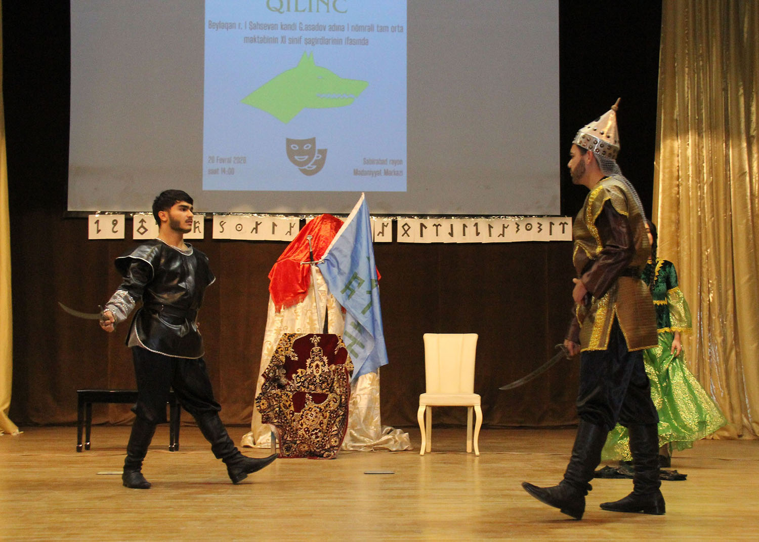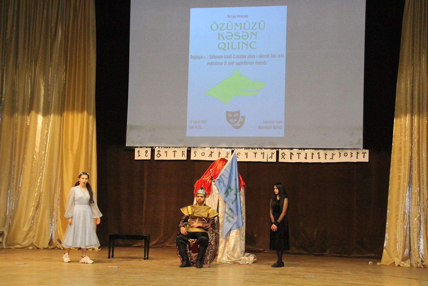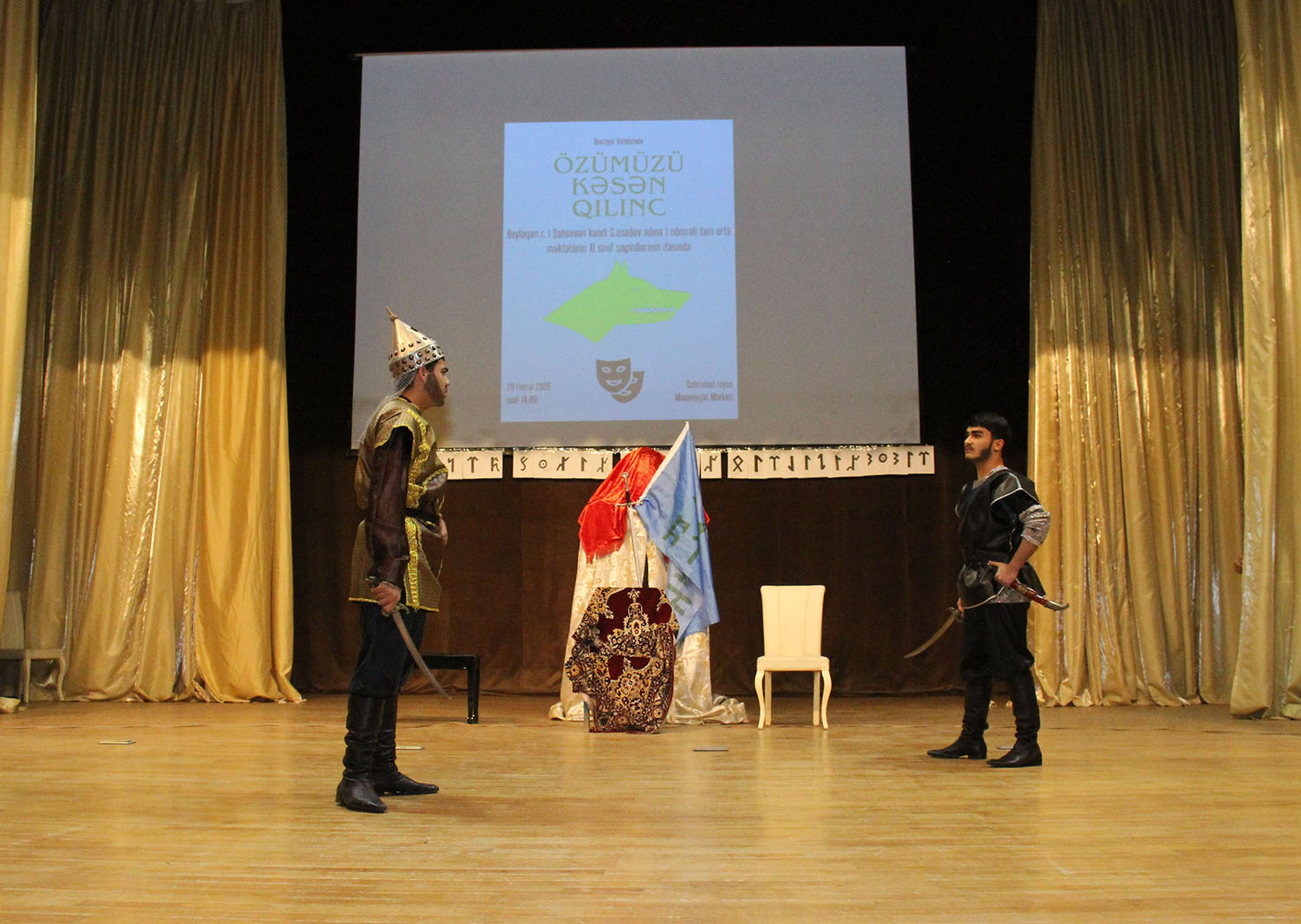 Səhnə əsəri Beyləqan rayonu Birinci Şahsevən kəndi Gəray Əsədov adına 1 nömrəli tam orta ümumtəhsil məktəbinin IX–XI sinif şagirdlərinin ifasında nümayiş olunub. Gənc aktyorların böyük məsuliyyət və həvəslə çıxış etməsi tamaşaya xüsusi canlılıq qatıb. Onların ifasında “Özümüzü kəsən qılınc” sadəcə bir ədəbi nümunə kimi deyil, tarixdən gələn bir dərs, bu günə ünvanlanan bir çağırış kimi səslənib.