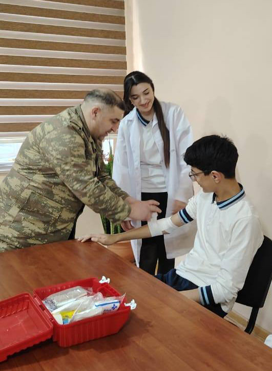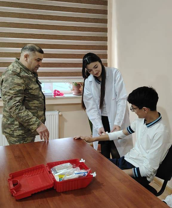 Eyni zamanda, ətraf mühitdə radiasiya səviyyəsinin müəyyən olunması, əleyhqaz və digər fərdi mühafizə vasitələrindən düzgün istifadə qaydaları əyani şəkildə nümayiş etdirilib və şagirdlərin sualları cavablandırılıb.